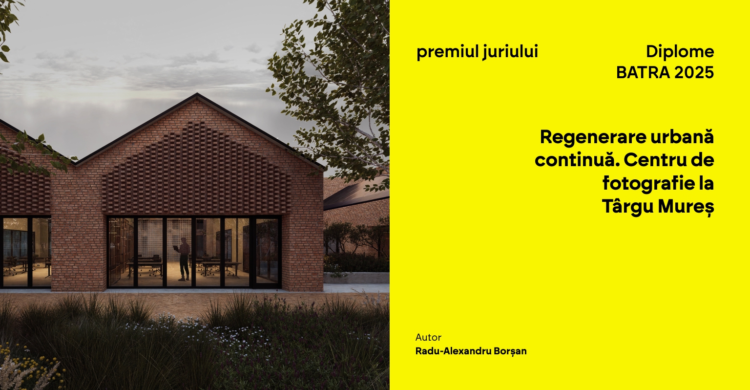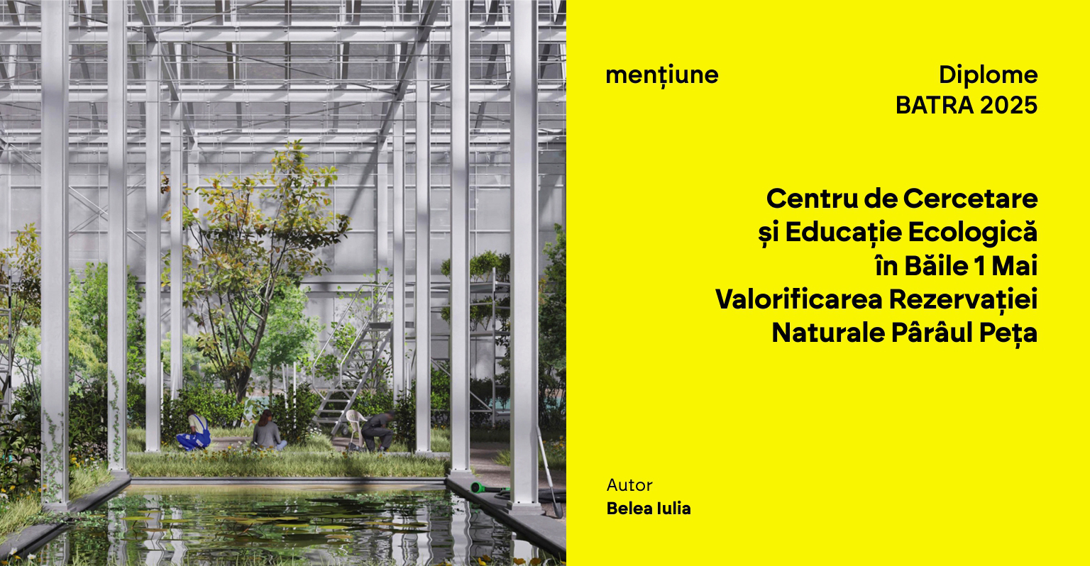 Unul dintre evenimentele organizate în cadrul Bienalei de Arhitectură Transilvania, în colaborare cu Facultatea de Arhitectură și Urbanism din Cluj-Napoca (UTCN) și Facultatea de Construcții, Cadastru și Arhitectură Oradea, este expoziția-concurs DIPLOME BATRA 2025.