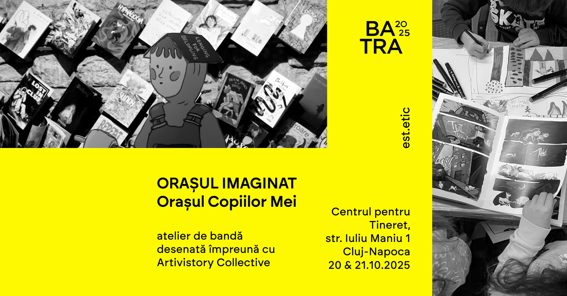 Public țintă: Tineri de la clasa a II-a până în clasa a VII-a, interesați de explorarea creativă a imaginației, poveștilor vizuale și a modului în care percep orașul în care trăiesc sau pe care și-l imaginează.